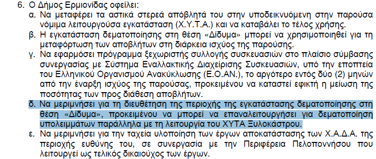 Διάθεση των αστικών στερεών αποβλήτων(ΑΣΑ) του Δήμου Ερμιονίδας Π.Ε. Αργολίδας και Δήμου Τρίπολης Π.Ε. Αρκαδίας Περιφέρειας Πελοποννήσου.