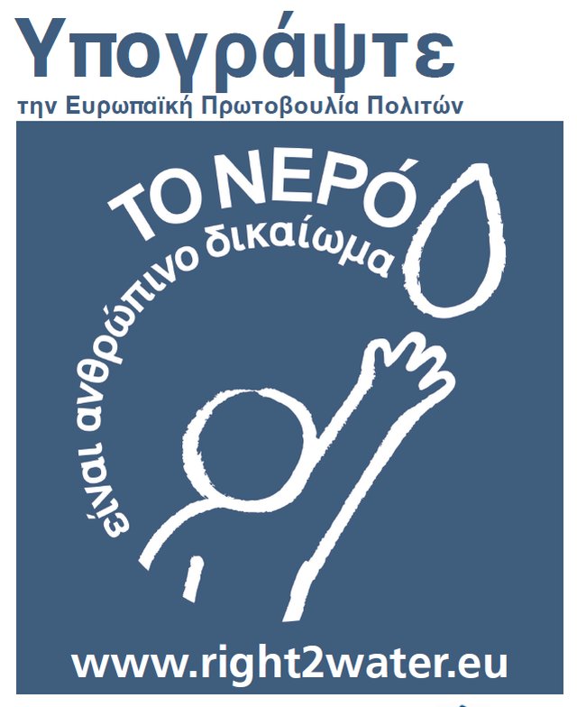 «Η Ευρωπαϊκη Πρωτοβουλία πολιτών για το δικαίωμα στο καθαρό νερό και αποχέτευση "Right2Water" είναι η πρώτη που κατάφερε να συγκεντρώσει τον απαιτούμενο αριθμό υπογραφών για να ζητήσει από την Ευρωπαϊκή Επιτροπή να υποβάλει νομοθετική πρόταση. Έτσι τώρα η Επιτροπή έχει τρείς μήνες για να δράσει σχετικά!