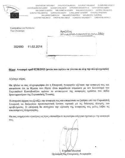 Σημείωση: Παραπέμπουμε στο σημείωμα που δόθηκε στους Ευρωβουλευτές από τη Γραμματεία της Επιτροπής Αναφορών και το οποίο περιλαμβάνει την απάντηση της Ευρωπαϊκής Επιτροπής για το θέμα: